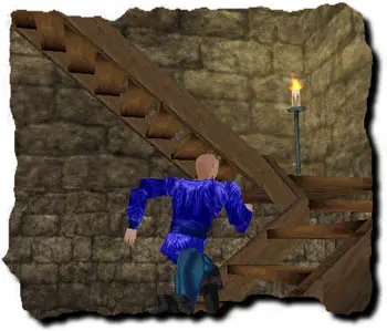 I decided it would be a good idea to run up to the top, and talk to the guard up top. But then I thought, “What kind of guard lets an entire Temple be burned to the ground? Obviously, a lazy one. He was probably asleep, and didn’t see anything happen. Going up to talk to him would be a waste of my time.”