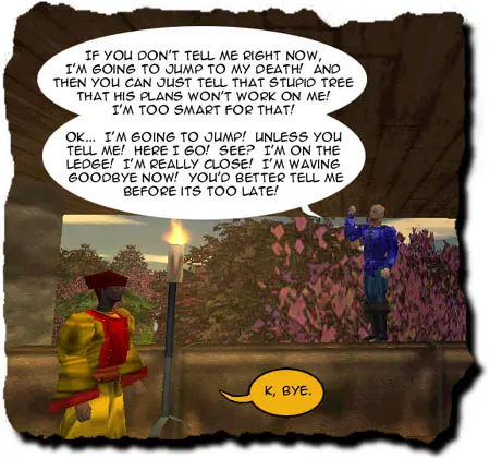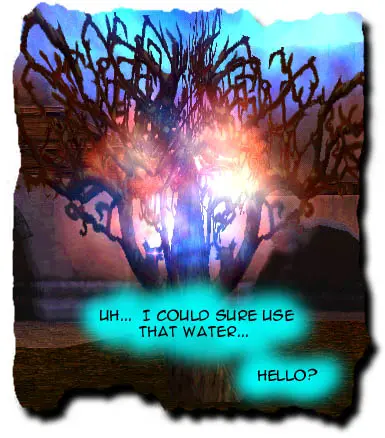 Oh, right. Lemme go grab a bucket and then head down to the riv* HEY!! I know what you’re up to! You’re trying to keep me away from that tower! Well your scheme didn’t work! I’m gonna head up there right now!