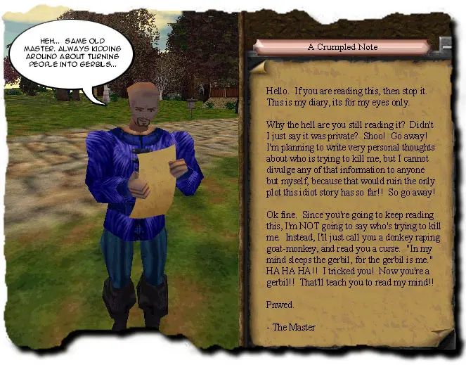 What MATTERS is that after I went back downstairs, I found a piece of paper laying on the ground. It was from the Master!