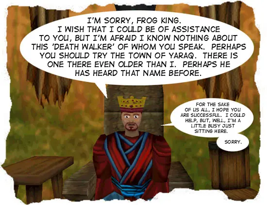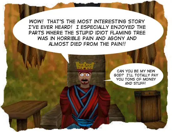And if he’s so wise, why aren’t there any guards guarding him? I could walk right up to him and kill him right now.