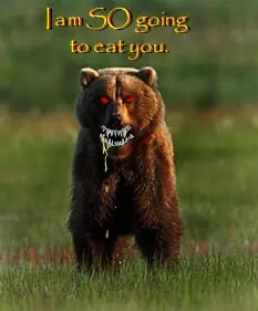 And how did anyone find out that they tracked the bear to molest it? Did the teenager who survived actually tell people that? “Oh, god, it was awful!! Billy was just playing with it, and the bear was still asleep, so Billy unbuckled his pants… Oh god, I can still hear his screams!”