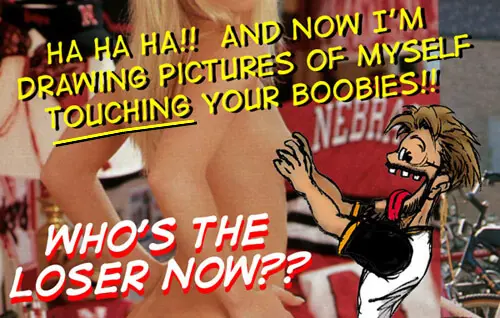 HAHAHAHAHA!!! FINALLY!!! She wouldn’t have given me the time of day before, but NOW I can see her boobies anytime I want!!